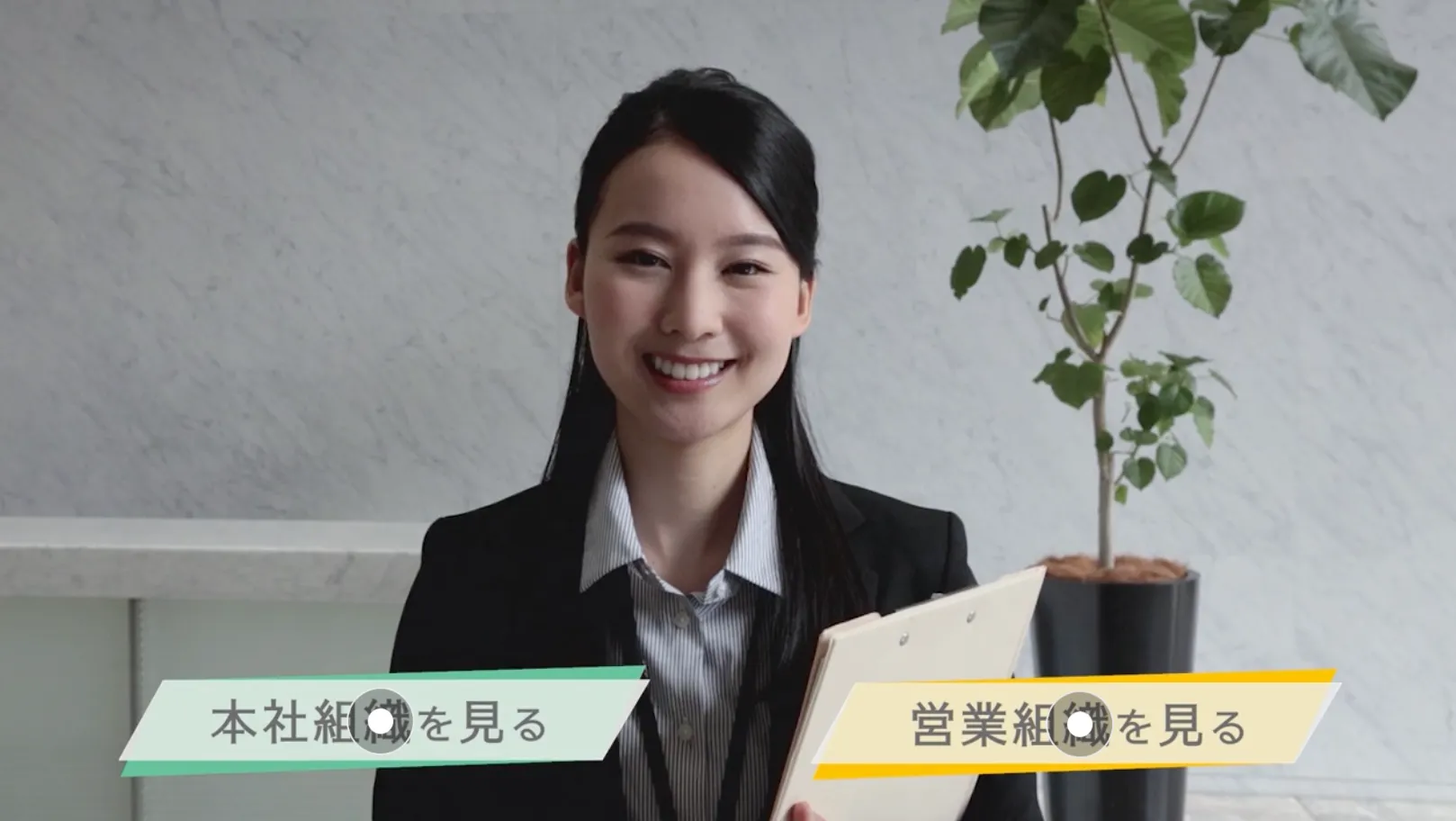 近年の採用動画のトレンドとなっているのが、インタラクティブ動画です。インタラクティブ動画とは、視聴者が動画内で選択肢をクリックしながら進み、選択によってストーリー展開が変わる「体験型採用動画」です。