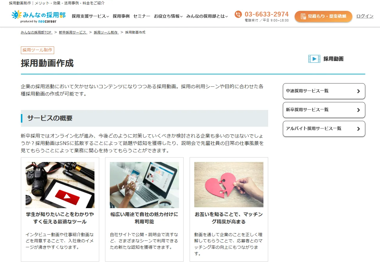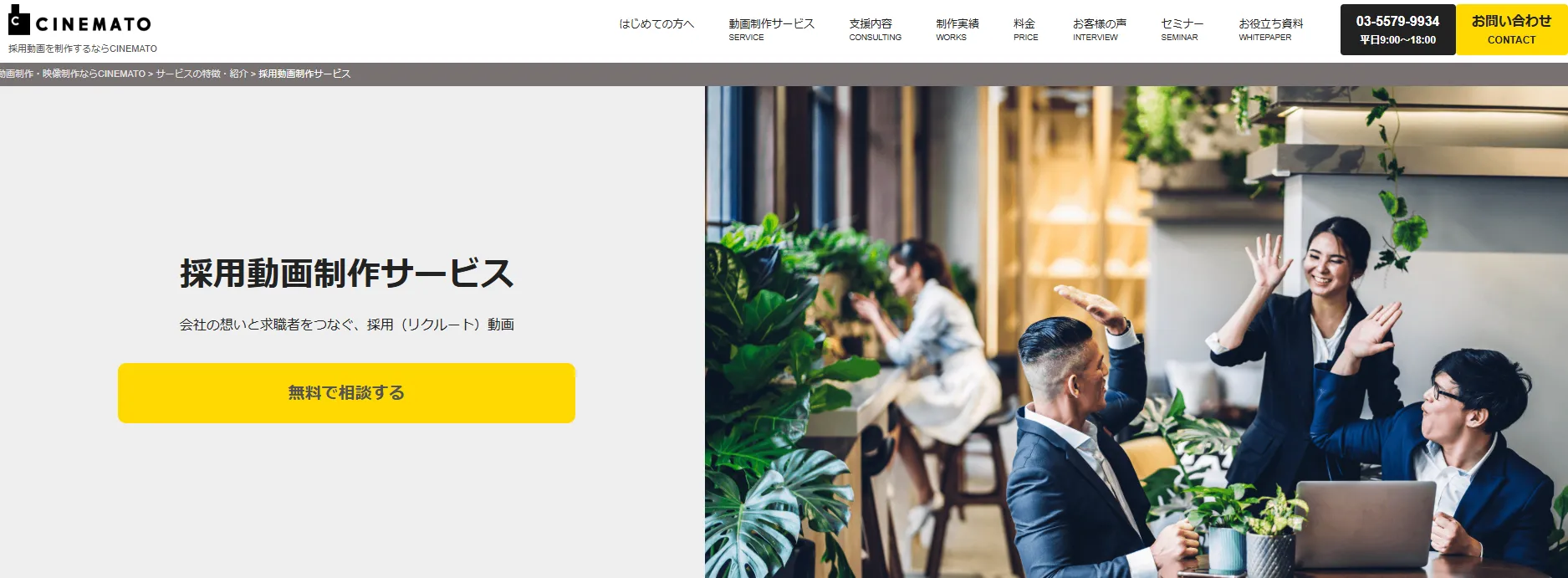 - 採用サイト制作も可能なため、サイトと動画の相乗効果が期待できる