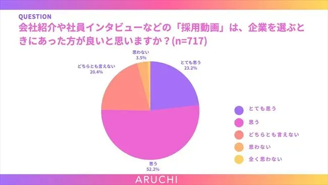 同調査では、「採用動画は、企業を選ぶときにあった方が良い」と答えたのは約75%という結果も出ています。