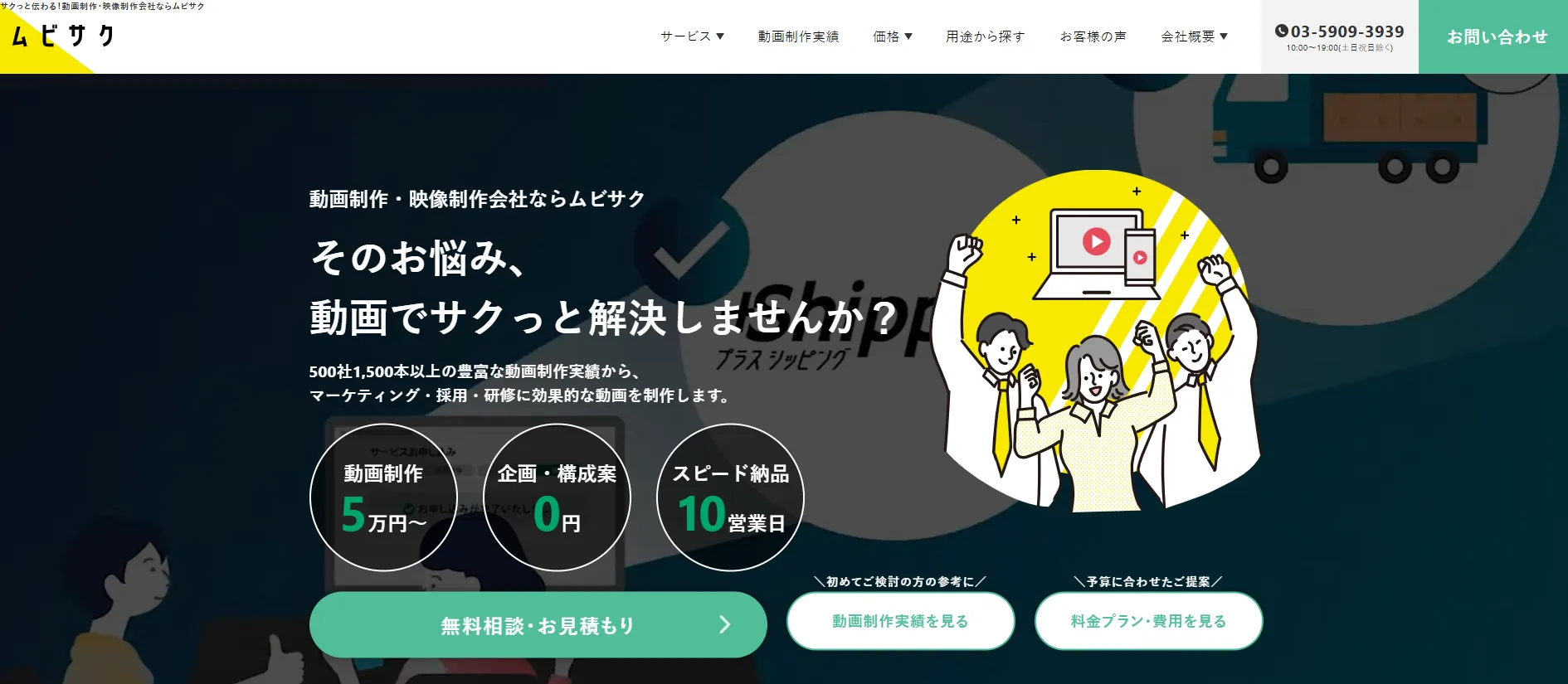 - 企画・ディレクションに重きを置き、1000社以上の競合企業の動画事例サンプルをストックしている