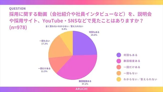 多くの企業が今、採用動画を採用活動に取り入れています。合同会社アルチが行った調査によると、「採用動画を就職・転職活動中に見たことがある」と答えたのは約73%にものぼりました。
